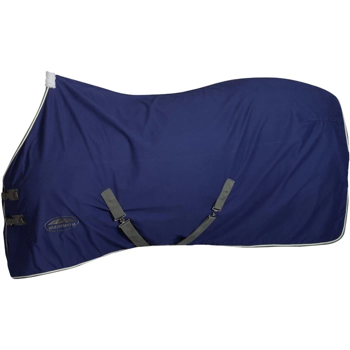 Perfect for all year round use to keep your horse clean and stylish for competitions. The WeatherBeeta Cotton Show Sheet With Surcingles II Standard Neck has a stylish and durable 100% cotton drill outer with nylon lined shoulders to help prevent rubbing and stretching, adjustable twin buckle front closure, low cross surcingles and tail cord.