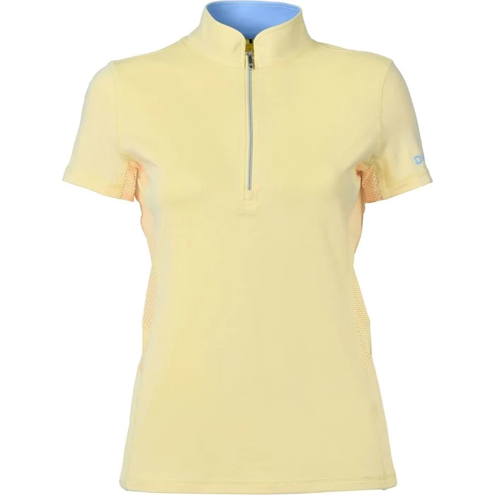 A great breathable short sleeved versatile top made from bi-stretch jersey fabric with sun protection factor 50+ and a peached outer. Featuring Comfort Dry Technology that will perform for you no matter what the weather providing moisture control for all day comfort. Mesh side panels, under sleeves and back yoke. The peached outer works to shed dirt, hay and horse hair, to keep you looking smart. A stand up collar with half zip placket, in a semi fitted style to offer a comfortable fit.