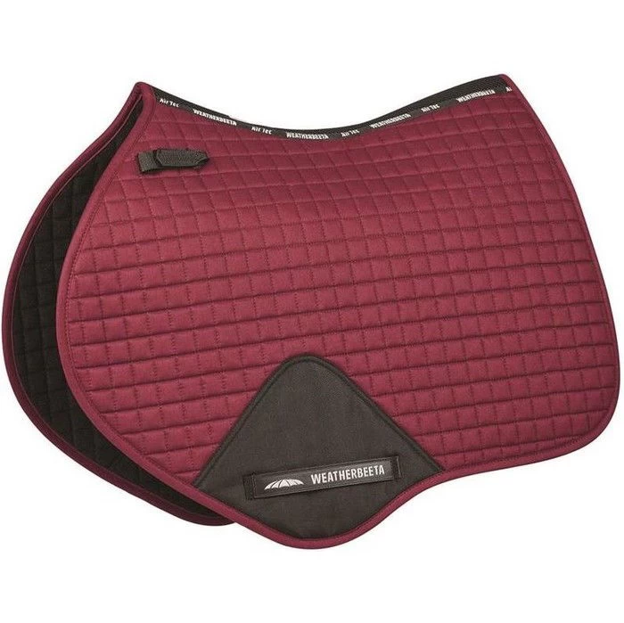 The WeatherBeeta Prime Jump Saddle Pad is a durable cotton pad with a wick easy lining helping to keep your horse cool, dry and comfortable. The breathable mesh spine allows extra airflow to the horse’s back. The covered girth patch offers durability and the touch tape girth loops allow for a versatile fit. Easy attachment to the D-rings is made simple with short touch tape loops for a secure fit and the high wither design allows for extra space to assure maximum comfort for the horse. Machine washable at 30 degrees, DO NOT tumble dry. Matching range available.
